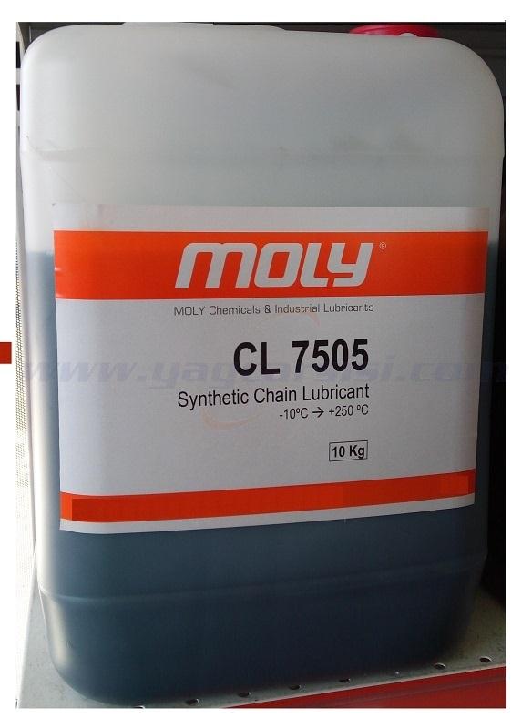 ÜRÜN TARİFİ: MOLY® CL 7505 yüksek sıcaklık ve aşırı yük gibi zor şartlar altında üstün performans gösterebilen sentetik esaslı zincir yağıdır. Suya, neme karşı, aşınmaya ve oksidasyona karşı yüksek dayanıklılık gösterir. Geniş kullanım alanına sahip sentetik zincir yağı; çok yüksek sıcaklıklarda dahi mükemmel yağlama yapar. Yüzeyde kalıcı bir film tabakası oluşturur. Kullanım süresi madeni yağlara oranla 6-8 kat daha fazladır.