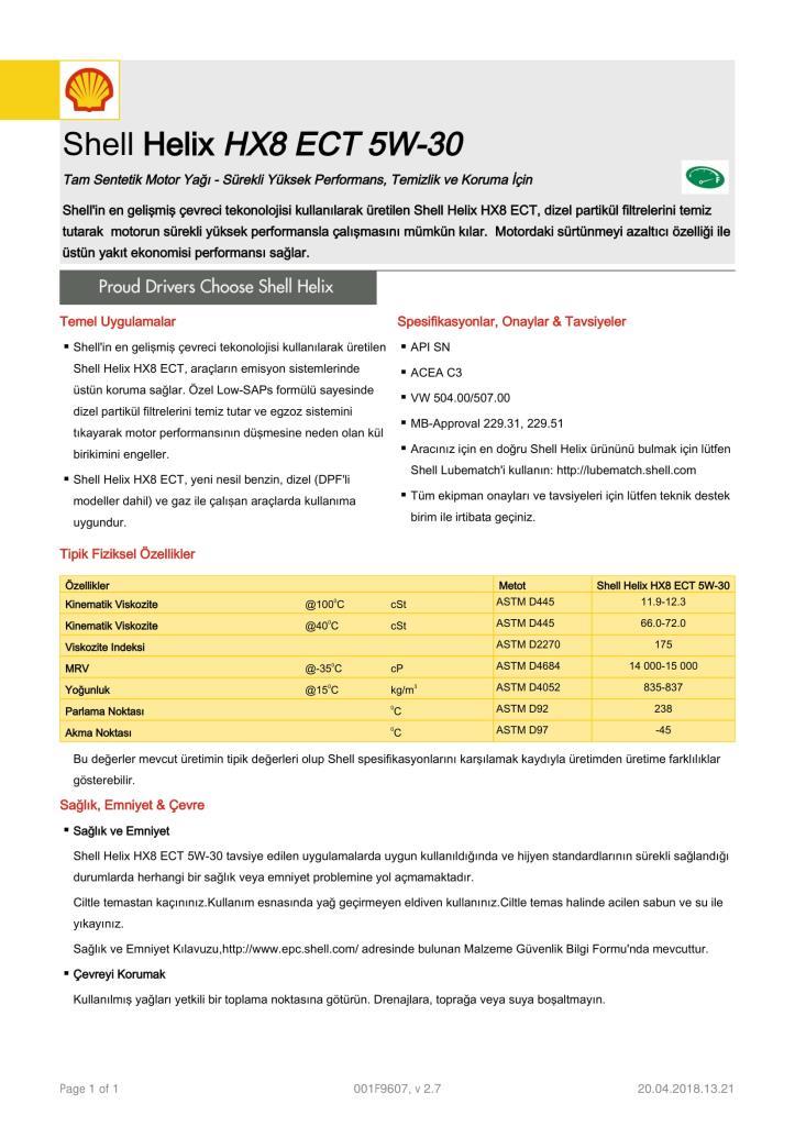 Shell'in en gelismis çevreci tekonolojisi kullanılarak üretilen Shell Helix HX8 ECT, dizel partikül filtrelerini temiz tutarak motorun sürekli yüksek performansla çalısmasını mümkün kılar. Motordaki sürtünmeyi maximum azaltıcı özelliği ile üstün yakıt ekonomisi performansı sağlar.